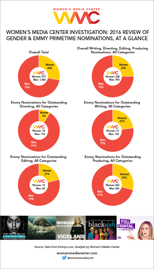 Women’s Media Center analysis ha stimato un 25% di presenze femminili per le nomination di questi ultimi Emmy’s Award, percentuale invariata dallo scorso anno. Niente di nuovo sotto il sole direi.